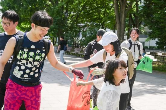 走ってゴミを拾う新しいアクティビティ『プロギング』では、走っている途中に「ナイスー!」という声が飛び交います。親子で一緒に、もしくはその時出会った仲間たちと走って笑い合えば、ゴールをする時には不思議な達成感。